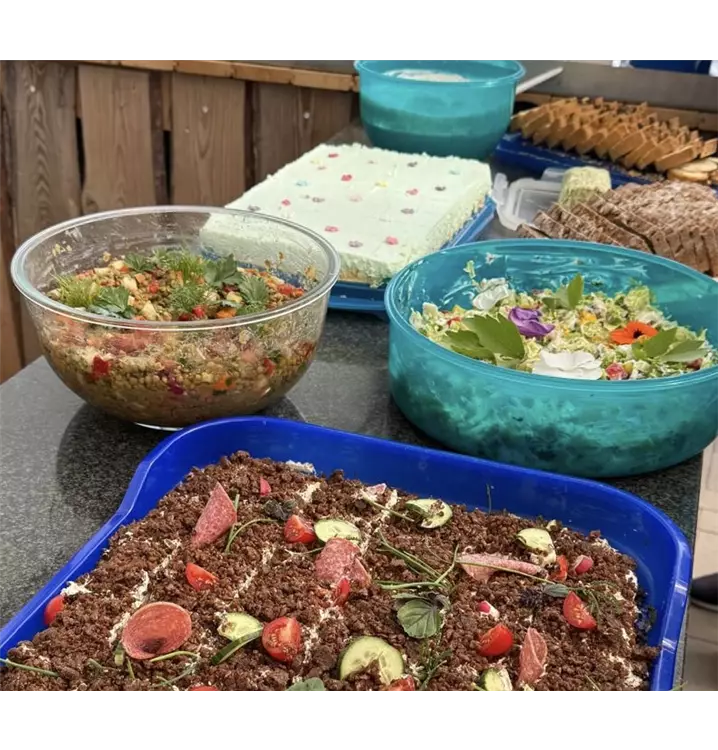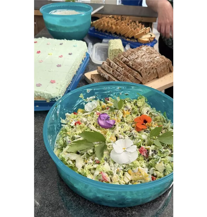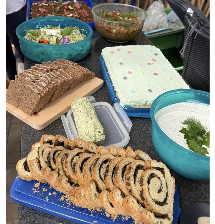 Freuen Sie sich auf einen liebevoll zubereiteten Kräuterbrunch mit: Erfrischender Kräuterlimo · Linsensalat mit frischen Kräutern · Pumpernickeltorte mit Kräuterfrischkäse · Kräuterbutter & Kräuterbrot · Waldmeistertorte · Rosmarinkekse · uvm.