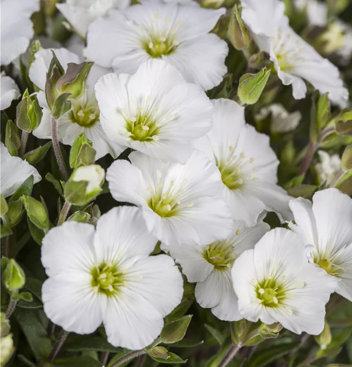 Arenaria montana bildet schalenförmige, weiße Blüten ab Mai.