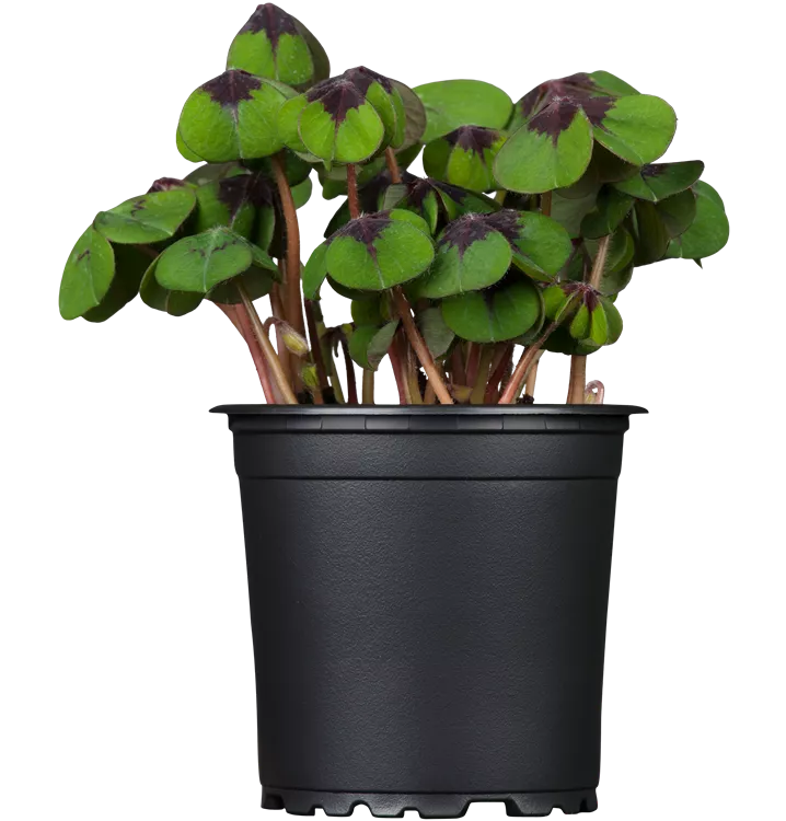 Die sommergrünen Blätter des Glücksklees sind zweifarbig, herzförmig.