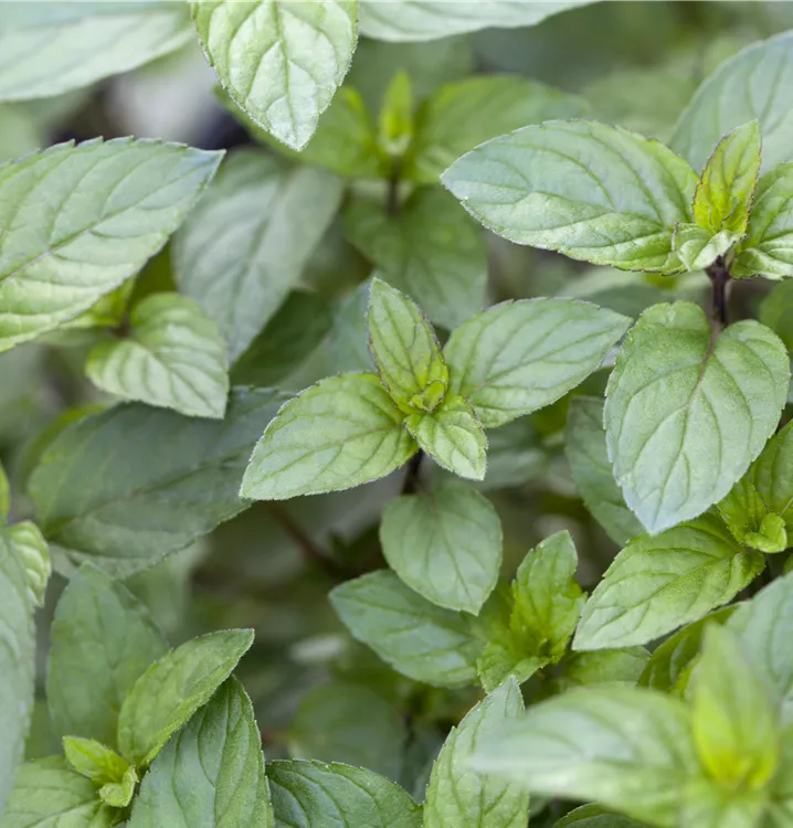 Zum Verzehr geeignet. Die grün-braunen, gezähnten Blätter sind eiförmig und überzeugen mit erfrischendem, minzigem Geschmack.