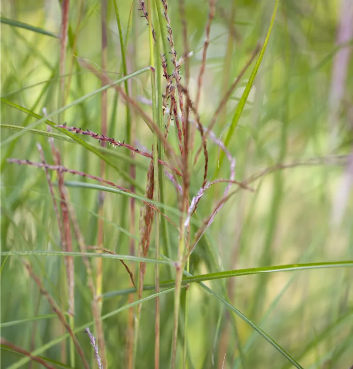 Das Garten-Chinaschilf 'Kleine Fontäne' (Miscanthus sinensis) ist mit seiner mittelgrünen Blattfärbung ein dekoratives Gestaltungselement im Garten, welches ebenso mit seinem aufrechten Wuchs hervorsticht. Die hellrosafarbenen Blütenrispen schmücken diese Gras ab Sommer. An einem sonnigen bis halbschattigen Standort mit einem möglichst durchlässigen, humosen, nährstoffreichen Boden fühlt es sich am wohlsten. Bei günstigen Bedingungen erreicht dieses winterharte Gras eine Höhe von ca. 1,1 m und wird bis zu 80 cm breit.