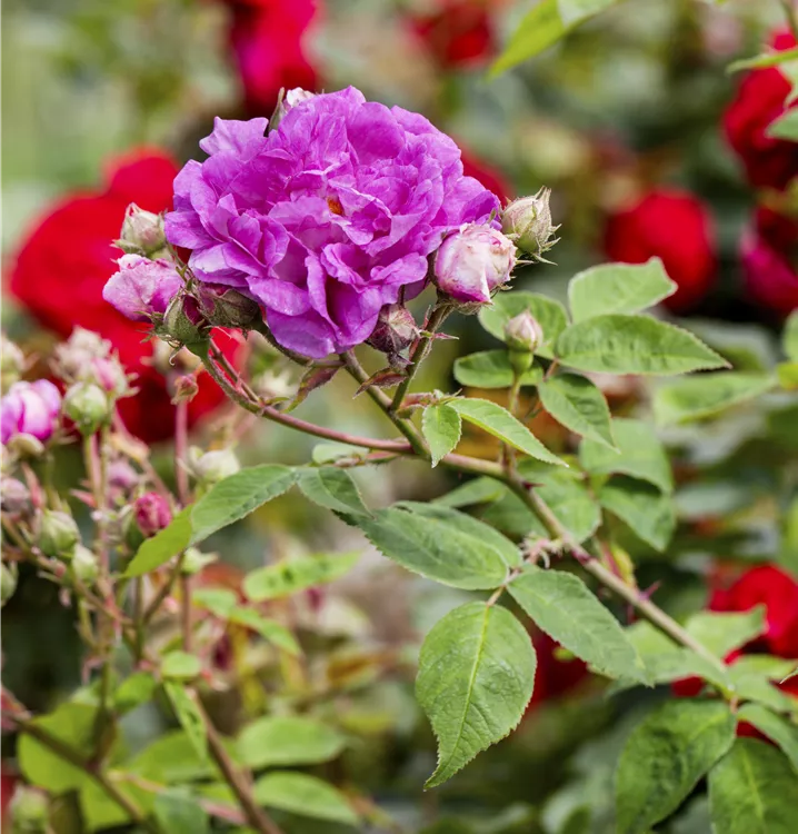 Die Triebe von Strauchrose sind bestachelt.