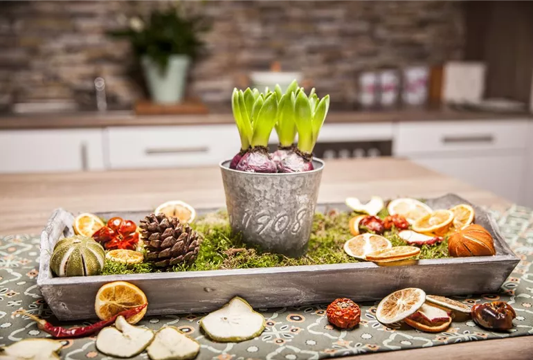 Damit Hyazinthen zu Weihnachten blühen, sollten sie schon im September mit dem Treiben beginnen. Damit sie rechtzeitig blühen, muss man ihnen zuerst einen Winter „vorgaukeln“. Dies geschieht durch Lagerung im Kühlraum. Solch behandelte Hyazinthen tragen auf der Packung den Hinweis „zur Treiberei geeignet“. Setzen Sie die Zwiebeln in ein mit Wasser gefülltes Hyazinthenglas oder pflanzen Sie sie in Erde, sodass nur noch die Spitze zu sehen ist. Die Zwiebeln sollten zuerst kühl und dunkel stehen. Erst im Dezember werden die Töpfe nach und nach ins helle, warme Zimmer gestellt, damit sich die Blüten entwickeln.