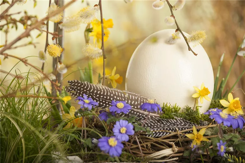 Vergessen Sie bitte nicht, etwa drei Wochen vor dem Osterfest in den Garten zu gehen, um sich schon ein paar Weiden- und Haselzweige zu schneiden, die Sie dann mit Eiern und Schmuck behängen, damit diese dann rechtzeitig zum Frühlingsfest in sattem Grün erstrahlen. Häufig ziehen solche Zweige auch Wurzeln, so dass Sie sie im Anschluss an das Fest gerne wieder in Ihrem Garten einpflanzen können.